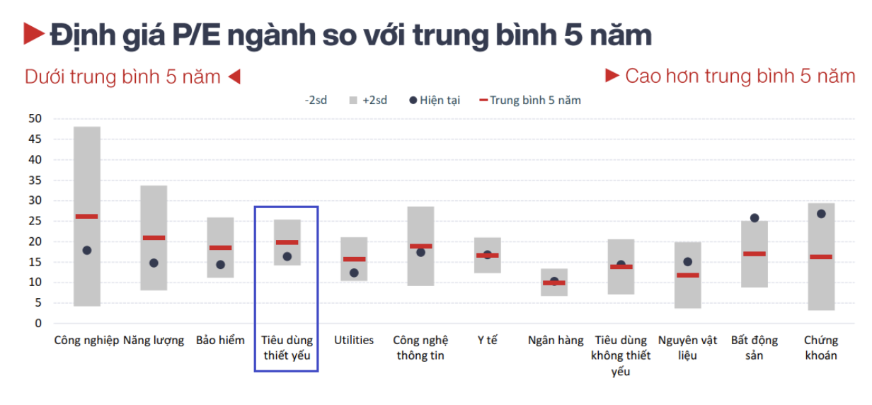 Tiêu dùng - bán lẻ đáp ứng được tiêu chí: định giá tương đối rẻ dựa trên tiêu chí PEG thấp hơn một và ROE đòi hỏi từ 15% trở lên, định giá thấp hơn trung bình 5 năm.