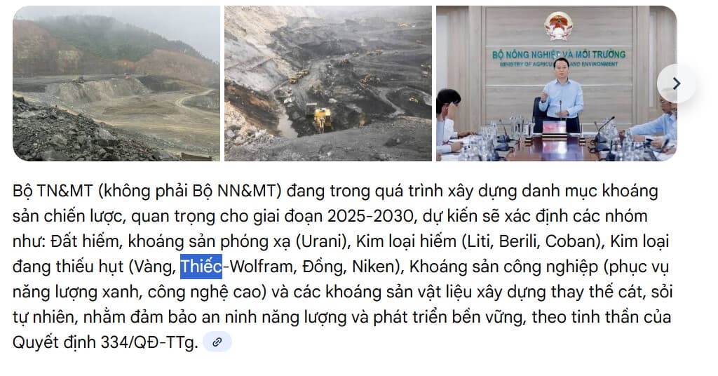 Trong danh mục 19 loại khoáng sản chiến lược giai đoạn 2025-2030 mà Bộ NN & MT ban hành, có Thiếc => do đó việc cấp phép cho KCB khai thác mỏ thiếc Nậm Kép gần như là chắc chắn.
