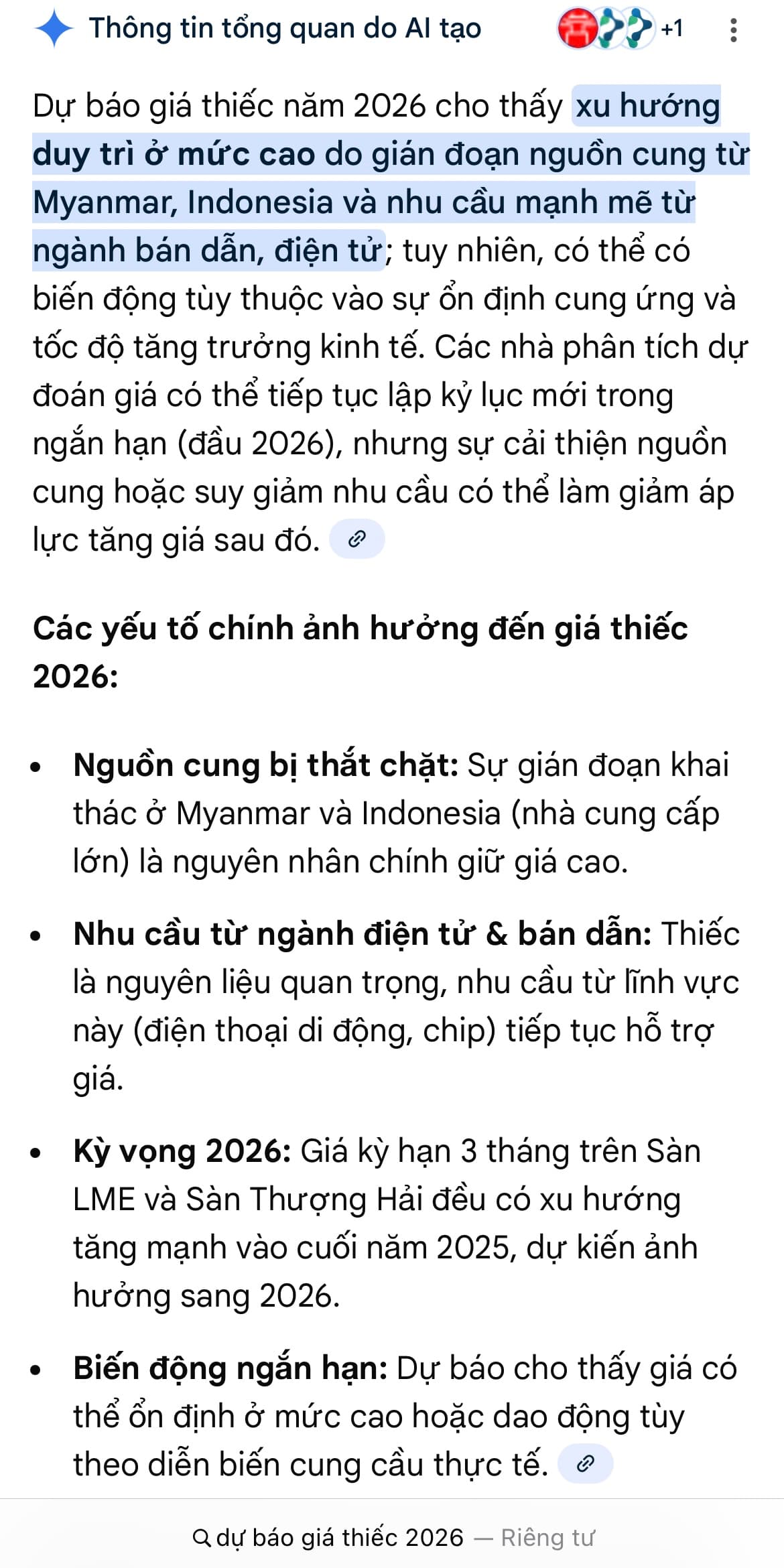 KCB là dn khai thác luyện thiếc thỏi duy nhất trên sàn với các mỏ lớn nhất VN. Giá thiếc đang tăng rất mạnh vì bị bóp nguồn cung ở Myanmar và Indonesia. Thiếc là đầu vào của ngành công nghiệp bán dẫn, công nghiệp xanh nên phía Trung Quốc đã bóp cung. Thiên thời cho KCB đấy bro.