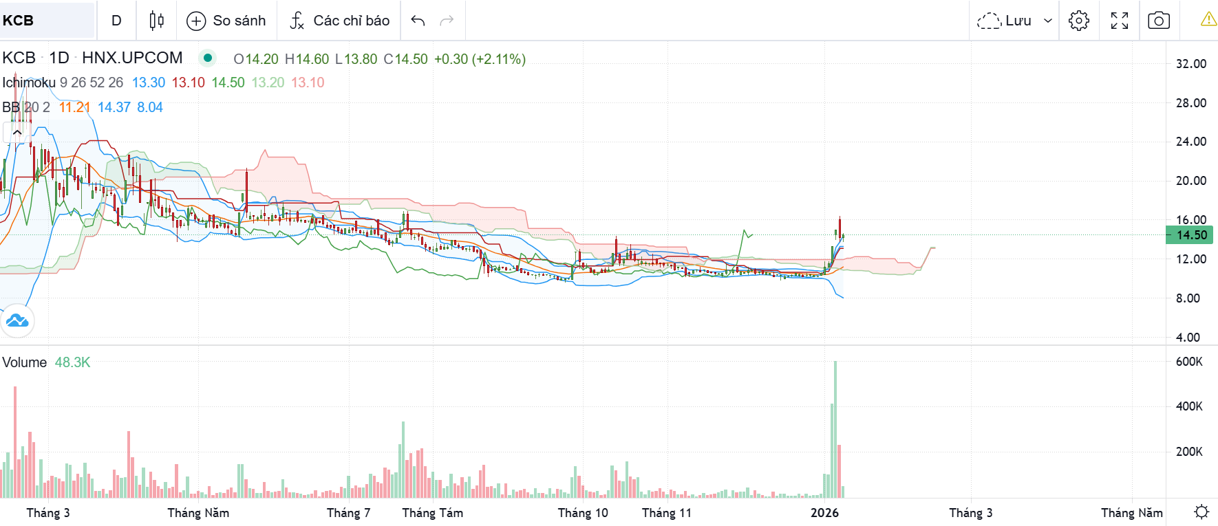 thật đáng tiếc nếu ae bán KCB giá 14 này. tay to đang gom hết cổ trên sàn, nó kéo lên như HGM hồi 2024 cũng dễ dàng.