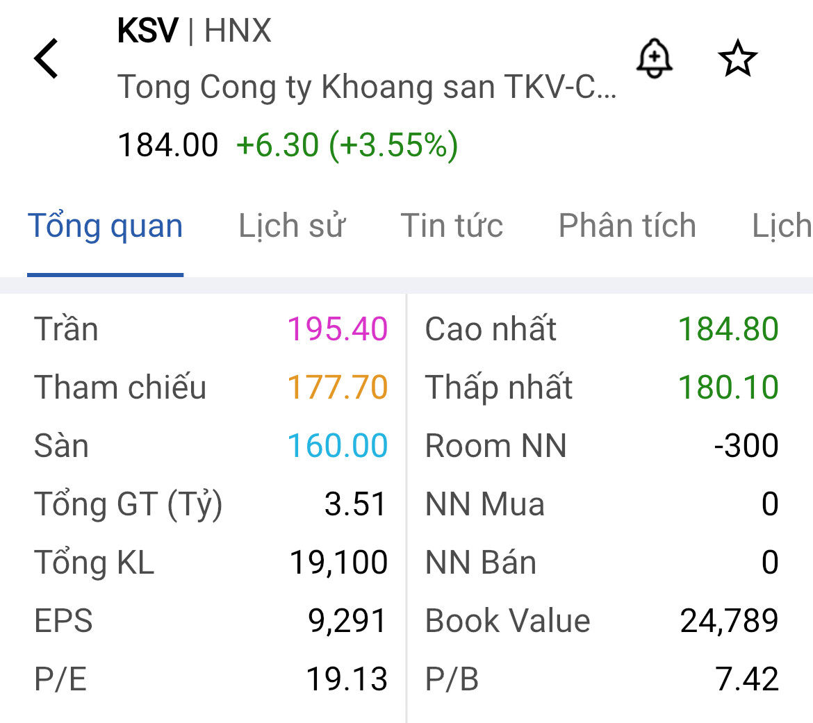 KSV có TMG cực tốt nhưng thanh khoản không có chứ chẳng có công ty nào