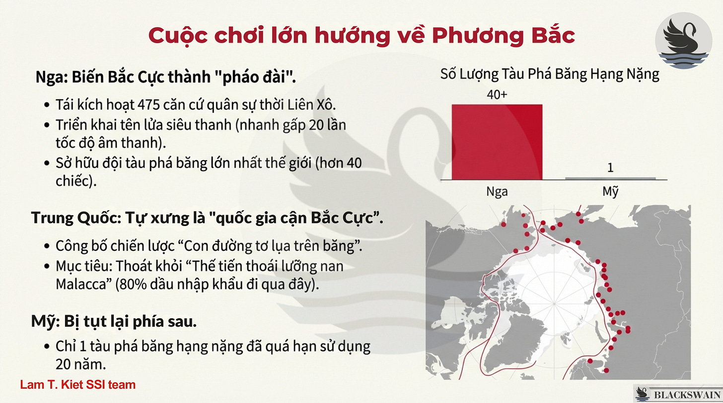 Mời anh em đọc lại pic Bắc cực- Ván bài Vĩ đại trên xứ Tuyết mình viết vào đầu 2024 để hiểu sâu hơn.
