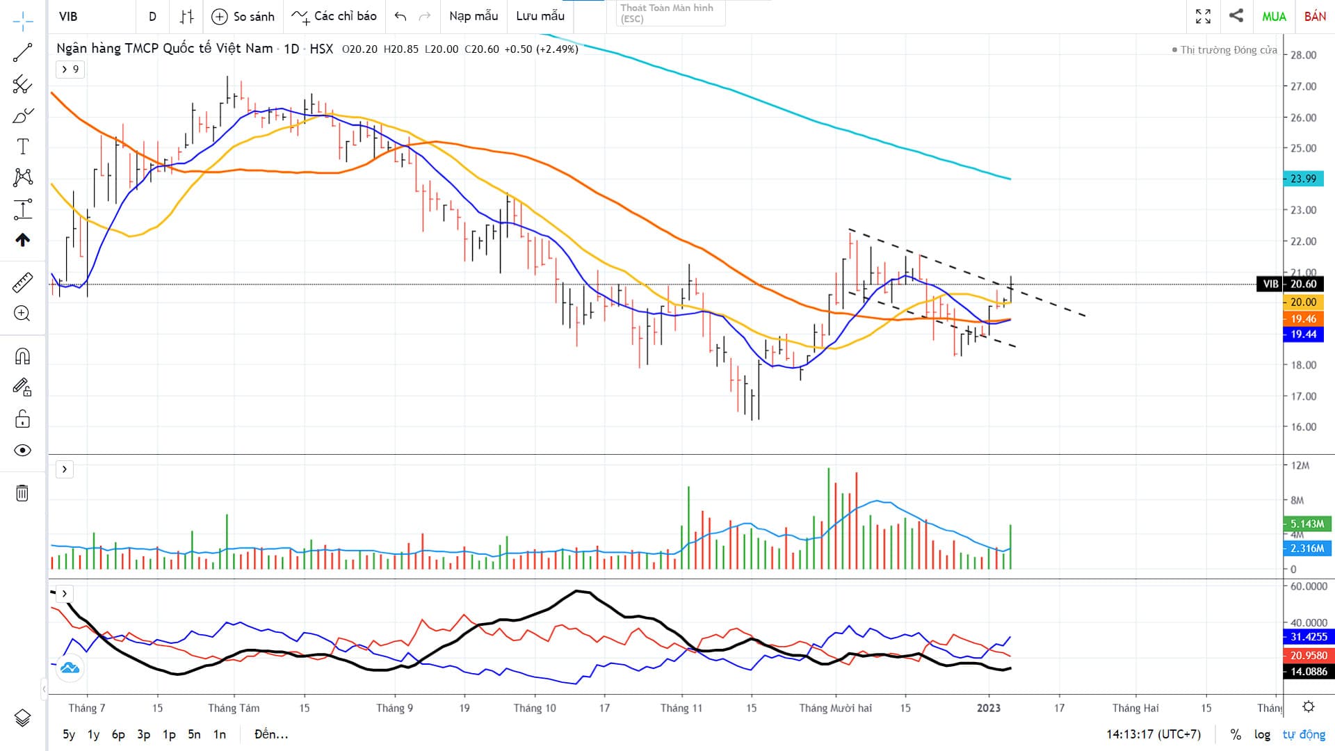 Vib có mẫu hình lá cờ ở vùng giá 20.6 với khối lượng lớn
