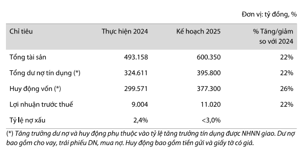 Đại hội sắp tới sẽ xem xét các phương án tăng vốn điều lệ năm 2025. Theo đó, HĐQT VIB đề xuất phương án phát hành cổ phiếu để tăng vốn cổ phần từ nguồn vốn chủ sở hữu. Cụ thể, VIB dự kiến phát hành 417,07 triệu cổ phiếu thưởng cho cổ đông và 7,8 triệu cổ phiếu thưởng cho cán bộ nhân viên.