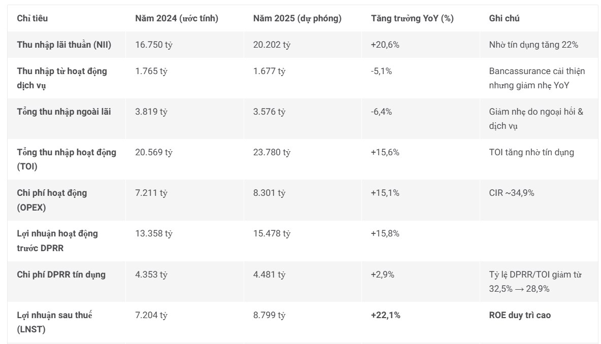 - Lợi nhuận sau thuế dự phóng trong năm 2025 đạt 8.799 tỷ (+22,1%)