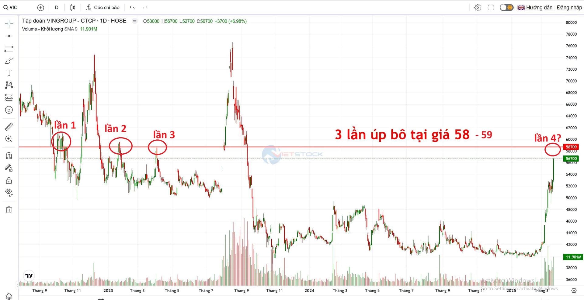 vùng này trong quý này và quý sau đang là vùng dao động ngẫu nhiên quanh 48-58. Tuy nhiên có thể khẳng định năm 2025 giá của VIC rất khó quay lại mức giá 40 tức bác chịu thua lỗ bất ngờ 20%)