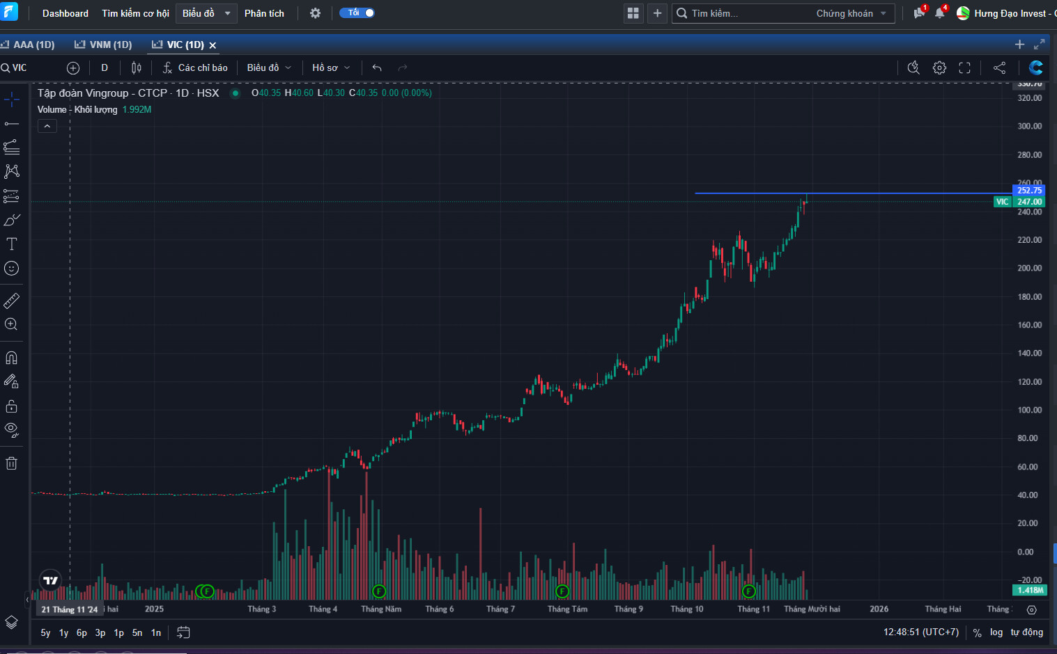 Mức giá 250.000 đ/CP và vốn hóa đạt mức ~ 1 triệu tỷ gấp 2 lần VCB, 3 lần CTG, 4 lần TCB