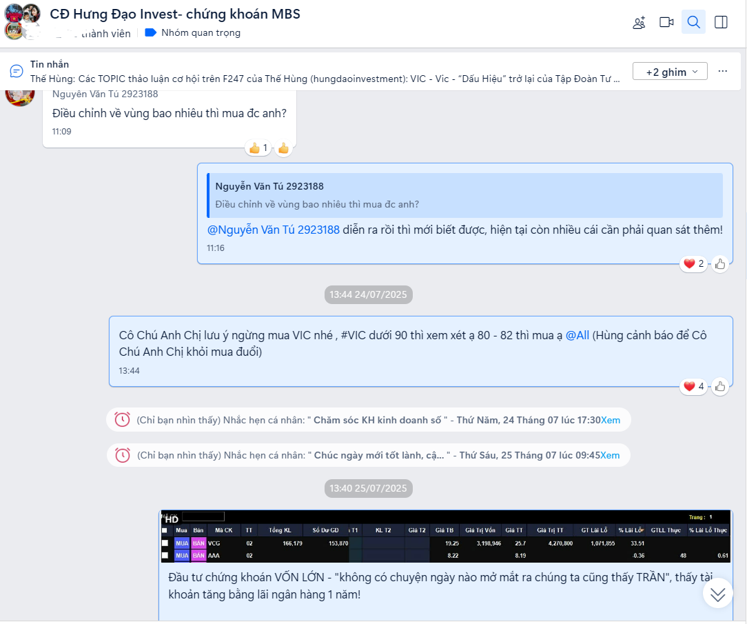 (dòng nhắn gửi đến cộng đồng tại “đỉnh ngắn hạn của VIC” ngày 24/7/2025 )