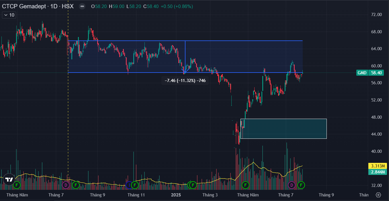 GMD từ lúc chuyển nhượng cảng NHĐV cho VSC là GMD tạo đỉnh vào pha giảm