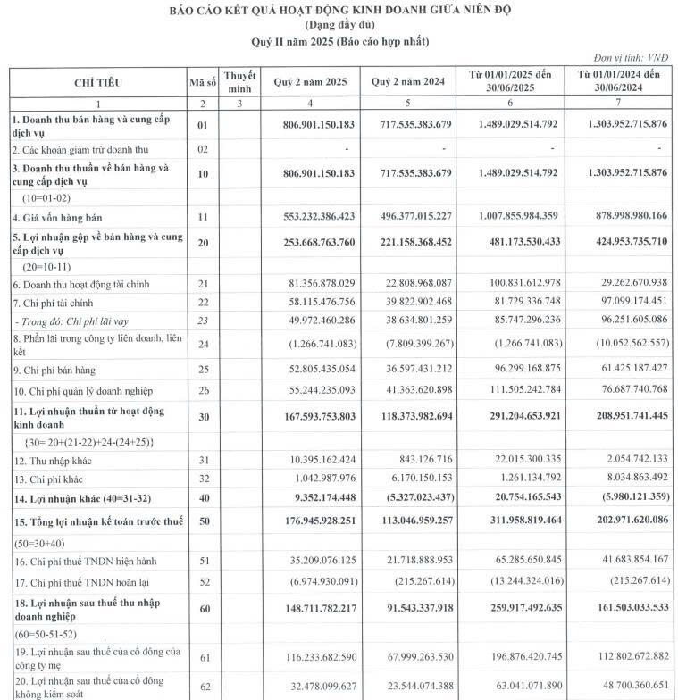 - Doanh thu thuần đạt 806,9 tỷ đồng (+12,5% YoY).