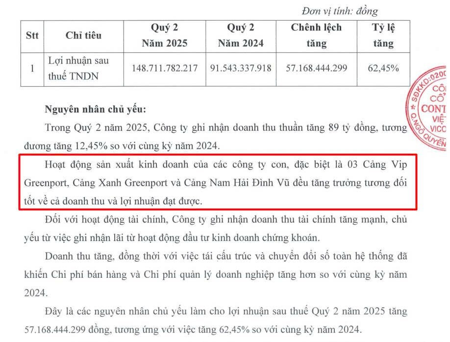 Tại bài phân tích VSC của team có đề cập đến cụm 3 cảng lớn là VIP Green, VIMC Đình Vũ, và Nam Hải Đình Vũ sẽ là cụm 3 cảng đóng vai trò chủ lực của VSC. Qua giải trình kết quả kinh doanh của VSC cũng công bố rằng 3 cảng có mức tăng trưởng doanh thu & lợi nhuận tốt nhất là VIP Green, Greenport và Nam Hải Đình Vũ.
