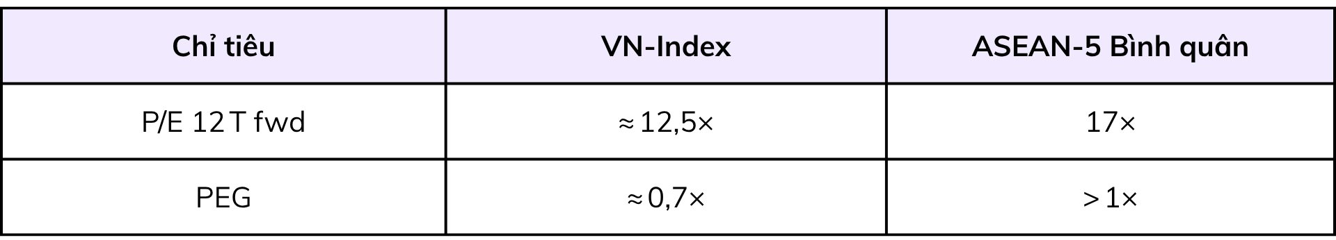 Nói theo ngôn ngữ quán cà phê: cổ phiếu Việt Nam vẫn còn “rẻ”, dù ly bia đã bỏ sẵn đá (tức rủi ro đã phản ánh phần nào). Khi đá tan, bia sẽ đầy ly – chính là triển vọng EPS tăng 18–20 % trong 2025.