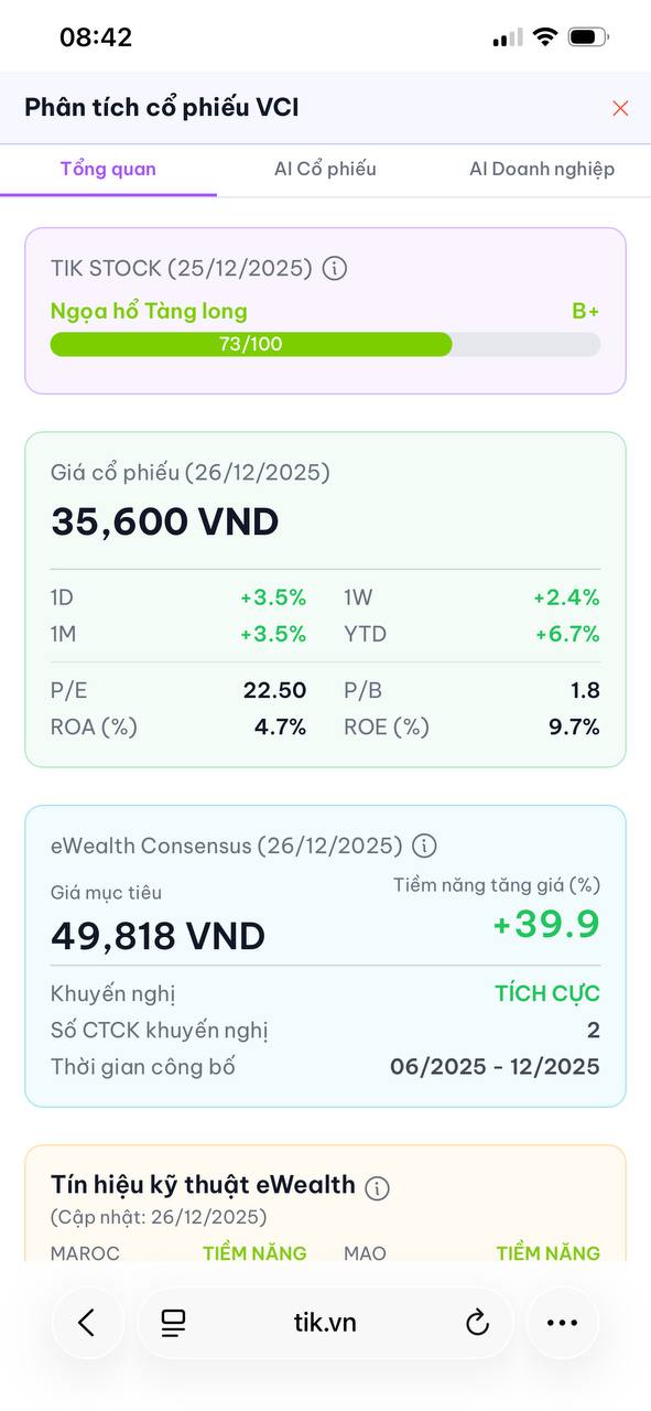- VCI vừa thông báo chốt danh sách cổ đông vào ngày 9/1/2026 để tạm ứng cổ tức đợt 1/2025 bằng tiền mặt với tỷ lệ 5% (500 đồng/cổ phiếu). Với hơn 850 triệu cổ phiếu lưu hành, công ty dự kiến chi ra 425 tỷ đồng để thanh toán vào ngày 20/1/2026.