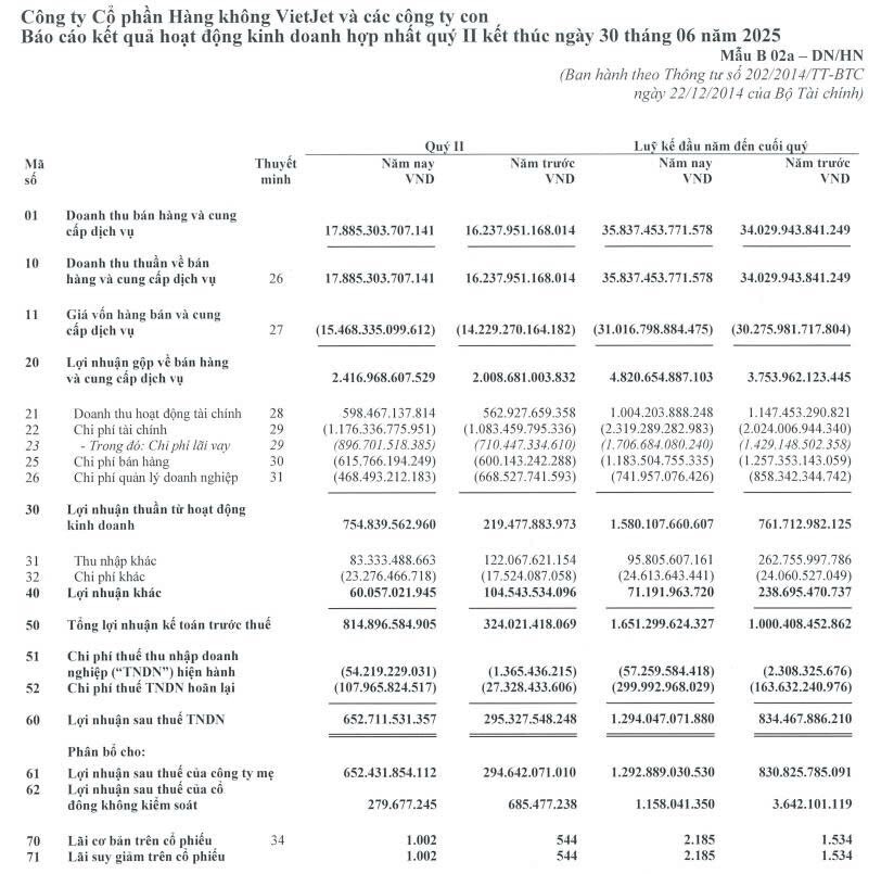 Q2/2025: Doanh thu thuần đạt 17.885,3 tỷ đồng (+10,15% YoY), LNST thu nhập doanh nghiệp đạt 652,7 tỷ đồng (+121% YoY).
