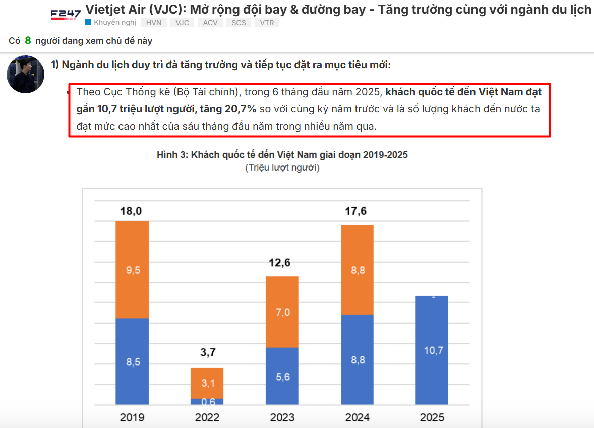 → Hoạt động ngành du lịch đã/đang có những chuyển biến tích cực và được Chính phủ đặt mục tiêu tăng trưởng rõ ràng, điều này sẽ là động lực rất tốt cho nhóm ngành hàng không nói chung và Vietjet nói riêng.