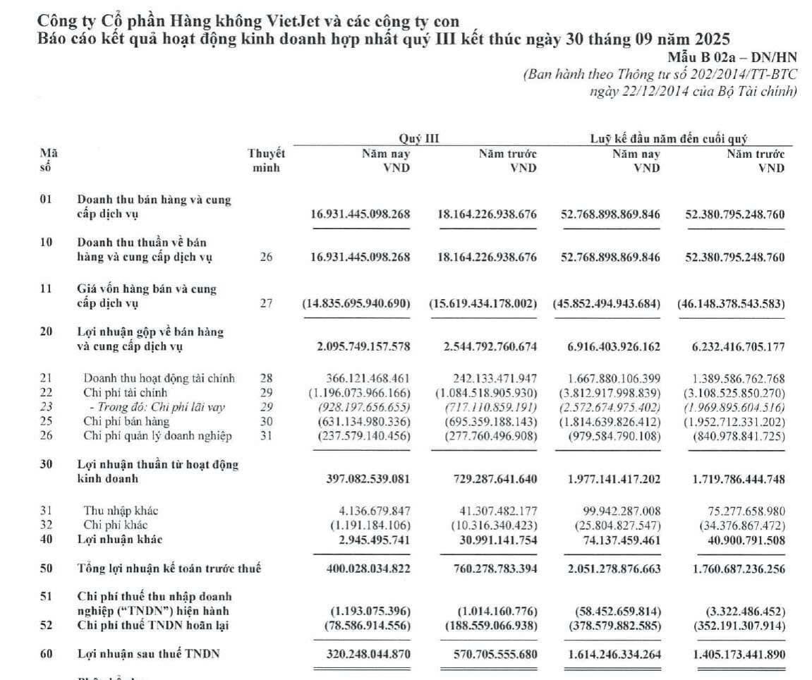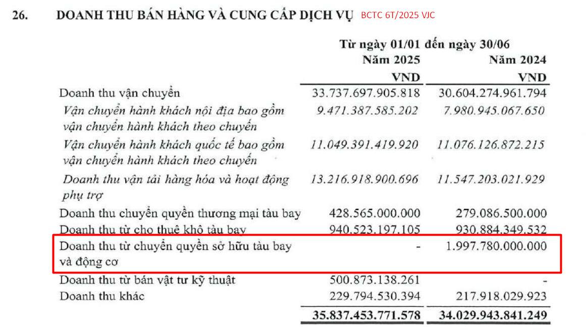 Trong báo cáo kết quả kinh doanh 6T/2025 của VJC, dù không còn ghi nhận hoạt động Sale anh Leaseback trong kết quả kinh doanh, biên lợi nhuận gộp của VJC vẫn đạt >13.4%, mức cao nhất trong gần 4 năm nay
