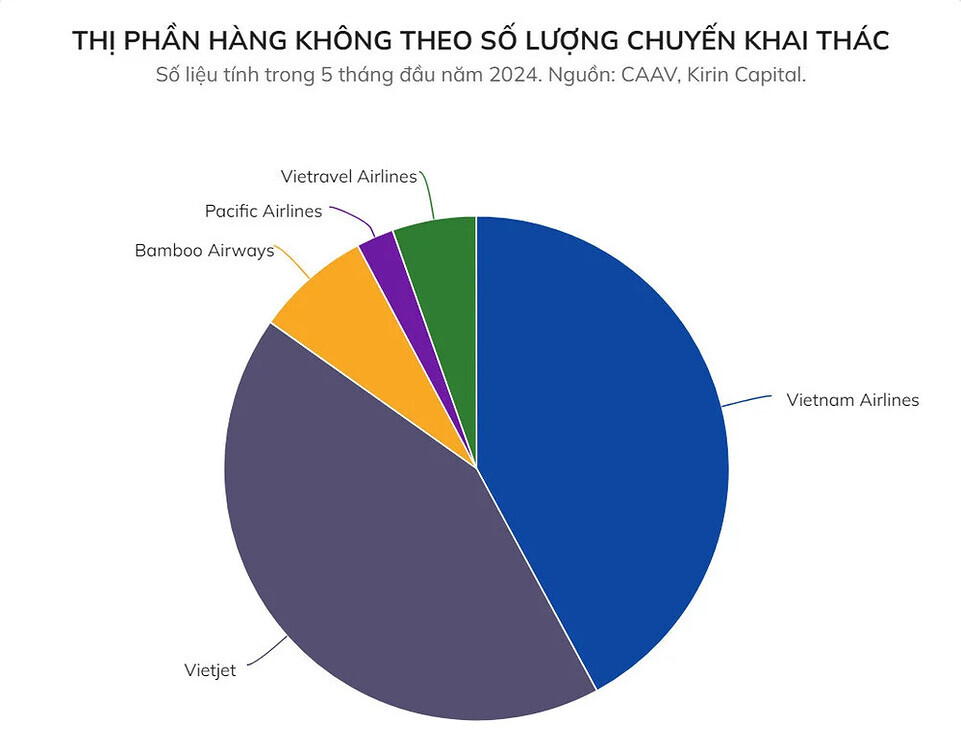 Thị phần hàng không tại Việt Nam được dẫn đầu bởi 2 ông lớn là Vietnam Airlines và Vietjet Air. Nhờ thương hiệu lâu đời và đội tàu bay lớn giúp cho HVN và VJC chiếm trọn miếng bánh hàng không. Trong khi đó các hãng hàng không cạnh tranh khác như Bamboo Airways hay Vietravel Airlines chiếm thị phần rất nhỏ do thương hiệu mới, quy mô vốn bé và ít tàu bay.