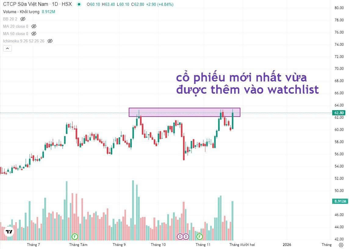 Hôm qua VNM tăng cực kỳ ấn tượng, cổ phiếu quay lại đỉnh cũ trong khi thị trường đang còn loay hoay sideway. Đây khả năng cao là cổ phiếu đang có sự biến chuyển lớn, dự kiến có thể dẫn dắt thị trường trong các quý tới. Cổ phiếu này là cổ phiếu mới nhất chúng tôi đưa vào Watchlist!