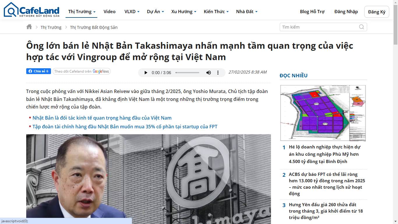 Ông lớn bán lẻ Nhật Bản Takashimaya nhấn mạnh tầm quan trọng của việc hợp tác với Vingroup để mở rộng tại Việt Nam