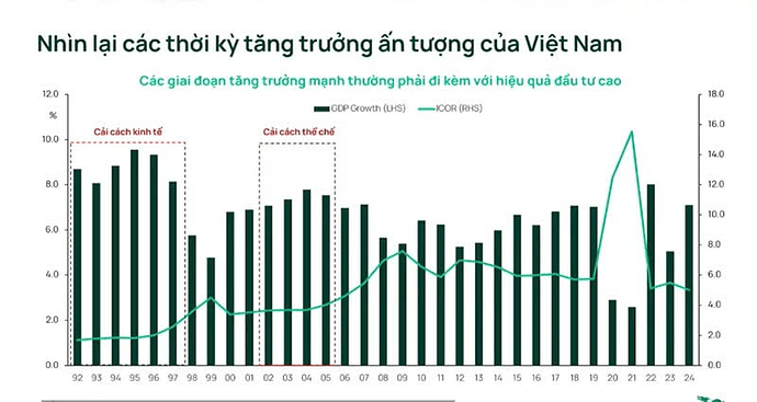 Thực tế, dù kinh tế Việt Nam đã đạt nhiều tiến bộ, hiệu quả sử dụng vốn vẫn là thách thức lớn, thể hiện qua hệ số ICOR duy trì ở mức cao, đặc biệt trong đầu tư công. Điều đó cho thấy để tạo ra một đơn vị tăng trưởng, Việt Nam phải bỏ ra nhiều vốn hơn các nền kinh tế phát triển. Một nguyên nhân quan trọng là khu vực tư nhân trước đây chưa được chú trọng, trong khi nhiều nước đã coi đây là động lực tăng trưởng chính.