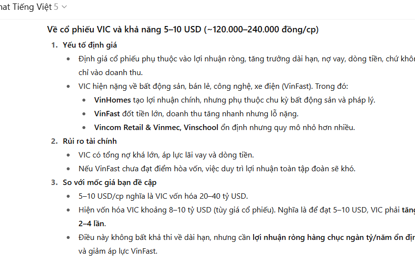 Dừng tranh luận ở đây → v/v VIC giá nào. NaK chỉ test + đưa thông tin AI chia sẻ … Còn cách chơi thì tuỳ thuộc “máu” + khả năng mỗi người thôi. Ko phê/chê trách HỌ mà được …