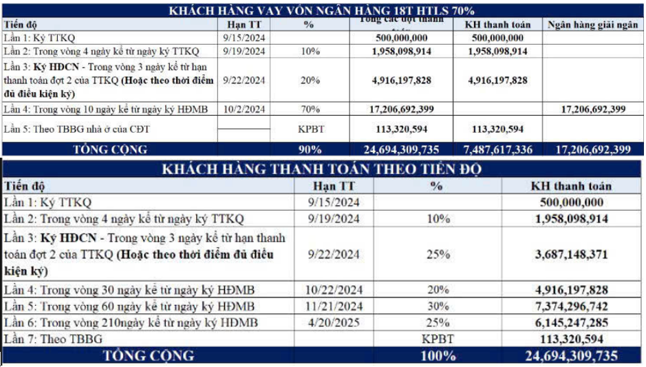 Giá bán không phải quá cao một cách vô lý nhưng cũng không phải thấp ở thời điểm hiện tại và với tổng số tiền phải bỏ ra để mua một căn LK tầm trung cũng vào khoảng 17-20 tỷ đồng không phải con số nhỏ. Tuy nhiên dự án cũng có hỗ trợ vay vốn ngân hàng và trả theo tiến độ dự án để có thể tiếp cận được nhiều đối tượng hơn. Cụ thể các thông tin về hỗ trợ này như hình 4 dưới đây: