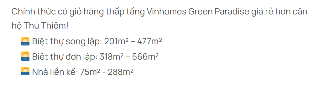 Trong 162.600 tỷ đồng doanh số bán hàng, dự án Vinhomes Green Paradise Cần Giờ đóng góp lớn nhất, chiếm 40%, tương ứng khoảng 65.000 tỷ đồng. Sau đó, là Vinhomes Wonder City, chiếm 23%; Royal Island, chiếm 17%; Green City, chiếm 9%;…