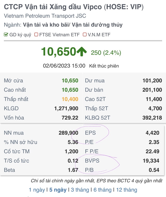Sau khi thị giá chạm đáy vào tháng 11/2022, cổ phiếu VIP liên tục tăng mạnh và bật dậy khỏi vùng giá 5.000 đồng/cp. Đến giữa tháng 4, VIP lần đầu trong một năm qua lấy lại phong độ “hồi” mệnh giá (10.000 đồng/cp), thậm chí còn có thêm vài phiên nữa tăng tiếp lên 12.000 đồng/cp trước áp lực “xả” hàng tương đối lớn từ các nhà đầu tư nhỏ lẻ.
