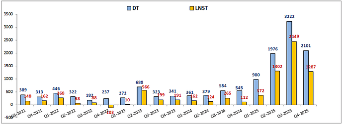 VIX đã công bố KQKD Q4 theo chúng tôi là không có gì quá bất ngờ khi trong bài phân tích quý trước chúng tôi đã dự phóng. Cụ thể Q4-2025 KQKD của VIX tăng trưởng tốt so với cùng kỳ với doanh thu đạt 2,101 tỷ đồng, tăng 286% yoy. Lợi nhuận sau thuế đạt 1,287 tỷ đồng, tăng 11.5 lần yoy. Tuy nhiên so với Q3-2025 liền trước thì KQKD trong Q4 đã sụt giảm hơn khá nhiều (doanh thu giảm 34.8%, lợi nhuận sau thuế giảm 47.4%). Điều này cũng là dễ hiểu bởi vì mảng tự doanh trong Q3 đã ghi nhận mức rất cao do danh mục nắm giữ tăng rất nhiều còn trong Q4 thì diễn biến khó khăn hơn rất nhiều. (Hình 1)
