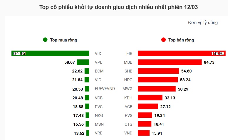 Top cổ phiếu khối tự doanh giao dịch nhiều nhất phiên 12/03