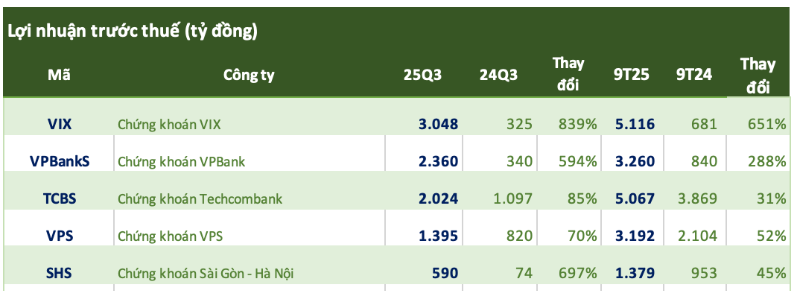 Bùng Nổ Lịch Sử: Ngành Chứng Khoán Lãi Kỷ Lục 19.000 Tỷ Đồng Nhờ “Sóng” Margin Quý 3/2025 chứng kiến ngành chứng khoán Việt Nam ghi nhận lợi nhuận lịch sử, ước đạt 19.000 tỷ đồng, tăng vọt 171% so với cùng kỳ. Đây là mức lãi theo quý cao nhất từ trước đến nay, phản ánh một mùa “bội thu” nhờ thanh khoản thị trường sôi động. Động lực chính đến từ “bữa tiệc” margin. Dư nợ cho vay ký quỹ (margin) toàn thị trường cũng phá vỡ kỷ lục, ước tính đạt 370.000 tỷ đồng. Con số này trực tiếp thúc đẩy doanh thu cho vay và phí giao dịch của các công ty chứng khoán (CTCK). Trong cuộc đua lợi nhuận, VIX dẫn đầu với 3.048 tỷ đồng. Gây bất ngờ là VPBankS vươn lên vị trí á quân (2.360 tỷ), theo sau là TCBS, SSI và VPS. Đáng chúF ý, 1/3 số CTCK báo lãi tăng bằng lần, với OCBS tăng trưởng đột biến 6.087%. Dù kết quả kinh doanh rất tích cực và triển vọng nâng hạng thị trường (FTSE) đang rộng mở, mức dư nợ margin kỷ lục cũng là thách thức lớn. Ngành chứng khoán đang đối mặt bài toán quản trị rủi ro chặt chẽ để đảm bảo tăng trưởng bền vững nếu thị trường đảo chiều.