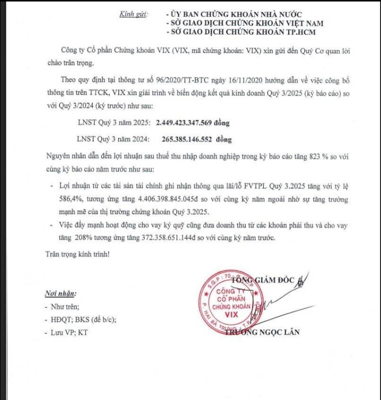 Dù VIX ghi nhận lợi nhuận mạnh quý 3/2025 là 2.450 tỉ nhưng đa số lãi này vẫn trên ghi sổ tại cổ phiếu GEE GEX EIB và chưa thực hiện chốt lãi danh mục tại cuối quý 3/2025.