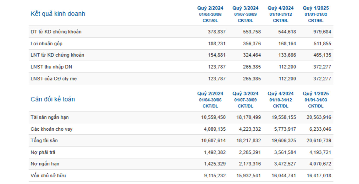 Trong quý 1/2025, CTCP Chứng khoán VIX ghi nhận kết quả kinh doanh bứt phá mạnh mẽ với doanh thu từ hoạt động chứng khoán đạt 979,684 triệu đồng, tăng tới 171,6% so với cùng kỳ năm 2024. Lợi nhuận sau thuế đạt 372,277 triệu đồng, tăng gần 130%, trong khi lợi nhuận thuần từ hoạt động chứng khoán cũng tăng gấp hơn 2 lần lên 465,135 triệu đồng. Kết quả này cho thấy hiệu quả từ chiến lược mở rộng hoạt động môi giới, tự doanh và cho vay ký quỹ của công ty.