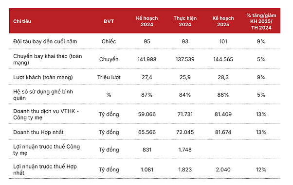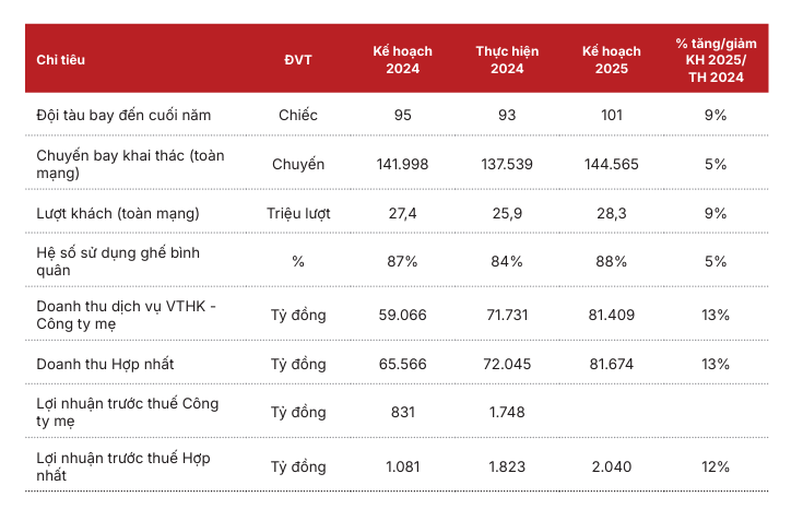 Tiếp tục xây dựng và ổn định hệ thống mạng bay trong nước trong năm 2025, tăng tần suất và tải cung ứng trong giai đoạn cao điểm hè, tối ưu hóa khai thác trên các tuyến quốc tế trong đó điều phối tần suất giữa các khu vực thị trường để tận dụng tải khai thác nhất là khi bắt đầu khai thác tàu bay thân rộng A330.