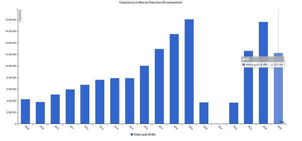 - Đi sâu hơn vào cơ cấu doanh thu của VJC ta thấy sự tăng trưởng doanh thu rõ rệt từ khách quốc tế, tăng trưởng ở mức 16,36% với cùng kỳ. Bên cạnh đó lượng khách quốc tế đến Việt Nam tính nửa đầu năm nay đã bằng ⅔ so với 2024 nên doanh thu từ khách quốc tế của VJC hoàn toàn có thể có dư địa tăng trưởng nữa.