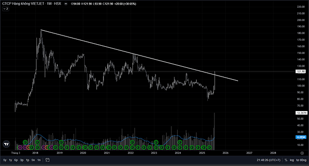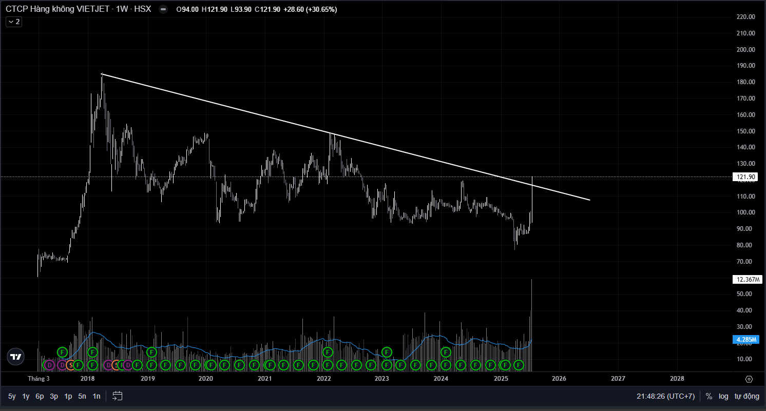 - VJC đã chính thức vượt qua cản chéo với lực mua khủng và đóng cửa cao nhất phiên. Nhà đầu tư có thể mua mới hoặc gia tăng thêm với những phiên điều chỉnh nhẹ dưới giá 120.