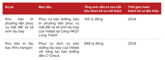 - Dự án này có mục tiêu đầu tư xây dựng công trình bảo dưỡng tàu bay số 3 và số 4 tại Cảng hàng không quốc tế Long Thành để hình thành tổ hợp bảo dưỡng tàu bay phục vụ hãng hàng không trong nước, bảo đảm lợi ích quốc gia, đáp ứng yêu cầu khai thác của Cảng hàng không quốc tế Long Thành giai đoạn 1.