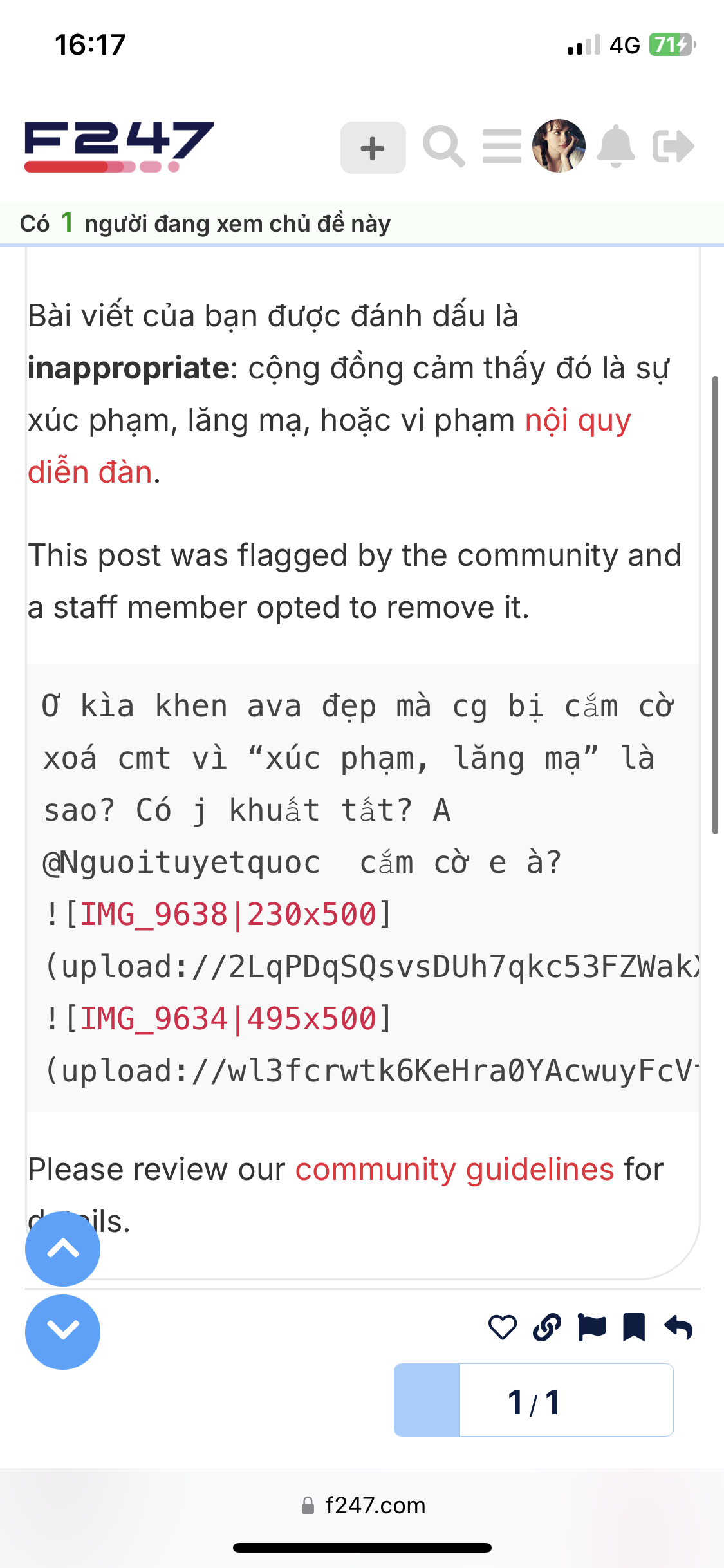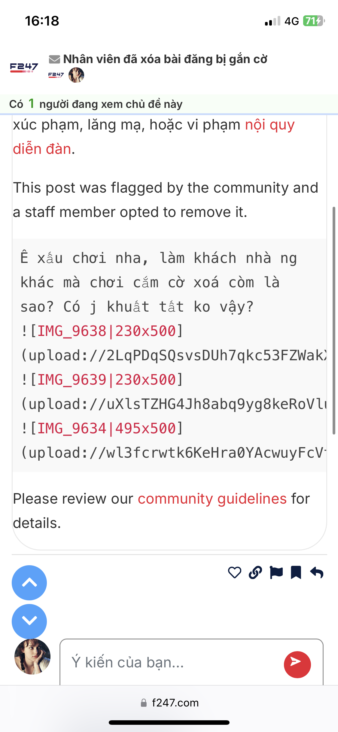 Comment e khen bạn Gấu để ava là hình AI của diễn viên Vạn Thiến xinh quá mà bị cắm cờ xoá còm vì lý do “xúc phạm, lăng mạ” đó, còn bị chặn ko cho thả tim chứ. Làm e phải đặt dấu hỏi về mục đích cắm cờ xoá comment.