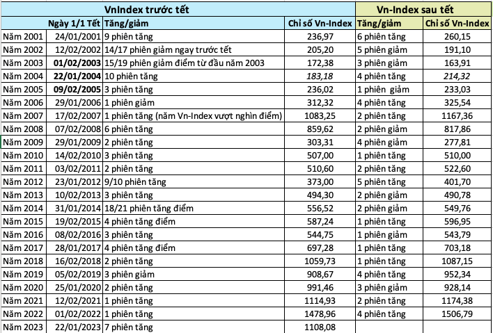 2023-2024: VN-Index đồng loạt tăng trong những ngày cận Tết, củng cố tâm lý nhà đầu tư.