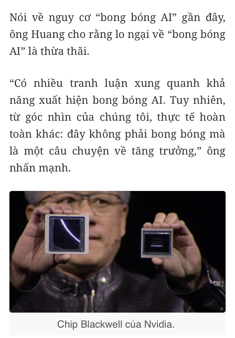 Đó k phải là dấu hiệu bong bóng, mà là tăng trưởng mạnh. sếp lớn Huang cho rằng lo lắng này là thừa thãi =)))