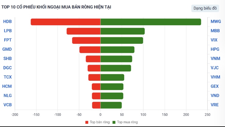 Phiên 23/12 chứng kiến việc mua ròng mạnh của vốn ngoại ở MWG, giúp cổ phiếu lên đình
