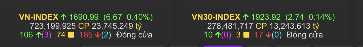 Vam tổng kết thị trường hôm nay: