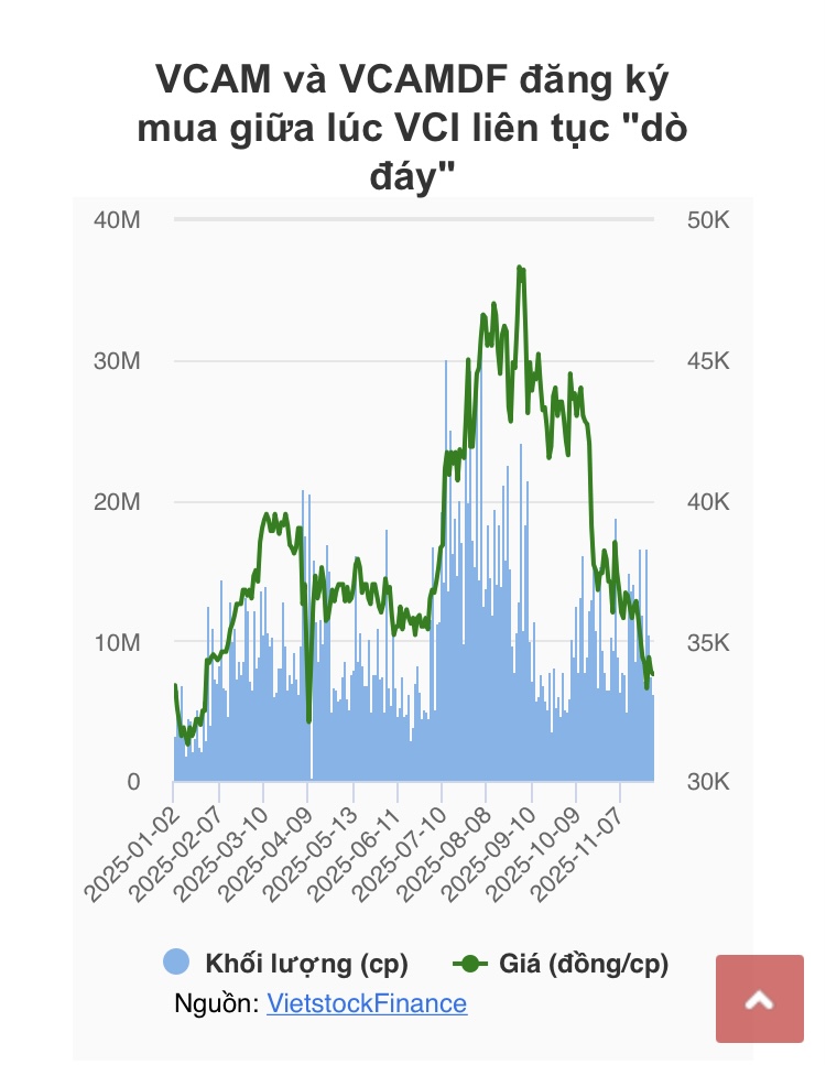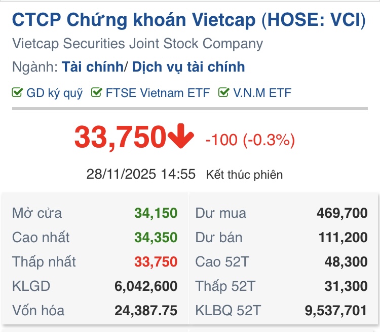VCI gần rơi về đáy 52 tuần luôn rồi
