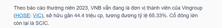 Tại thời điểm ngày 30/6, VNB có tổng tài sản 1.168,9 tỷ đồng, chủ yếu được hình thành từ nguồn vốn chủ sở hữu (1.144,3 tỷ đồng). Đáng chú ý, 85% tài sản, tương ứng 998 tỷ đồng, được mang đi cho một số doanh nghiệp khác vay dài hạn (>1 năm) với lãi suất 12%/năm; 89 tỷ đồng (8% tài sản) được dùng để gửi tiết kiệm ngắn hạn. Còn lại là lượng tài sản nhỏ nằm ở hàng tồn kho, tiền mặt, tài sản cố định…