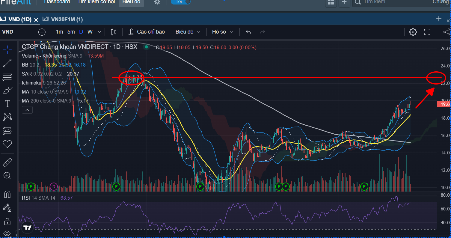 Hiện tại, VND vẫn đang trong xu hướng tăng. Nếu bạn lựa chọn mã chứng khoán VND trong thời gian này cần xác định một chiến lược ngắn hạn.