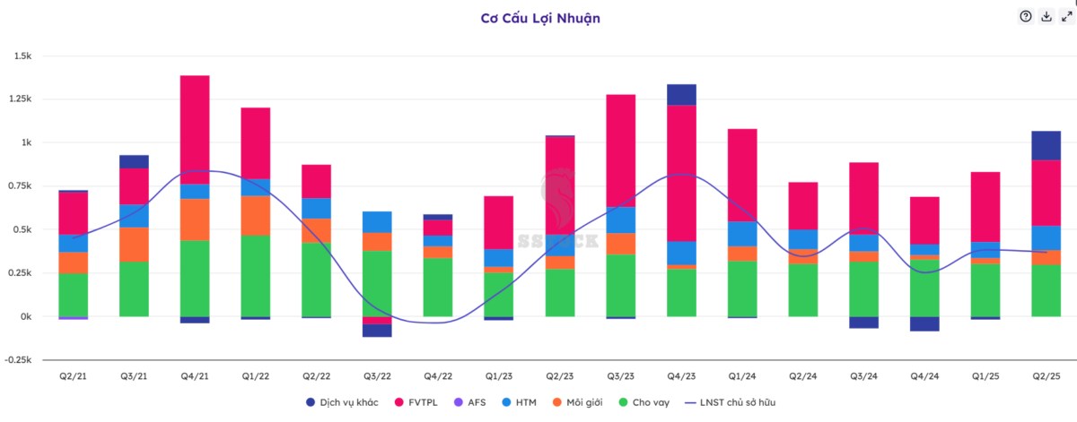 Tự doanh (FVTPL): vẫn là nguồn thu lớn nhất nhưng biến động mạnh.