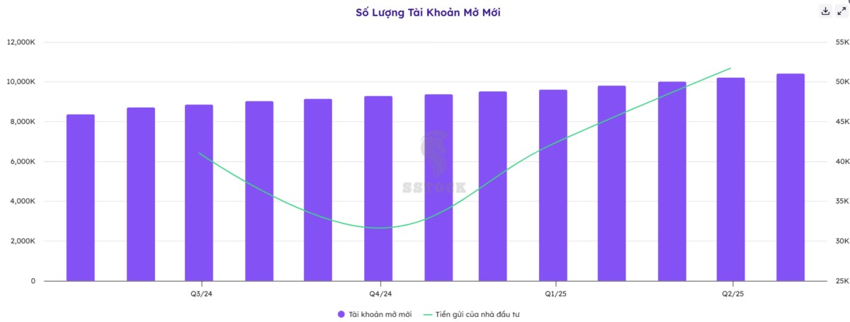 Thanh khoản thị trường 2025 bùng nổ: Giá trị giao dịch bình quân phiên vượt trên 40 nghìn tỷ, với ~1 triệu tài khoản cá nhân mới mở trong 8 tháng đầu năm. Điều này thúc đẩy doanh thu môi giới và margin của VND.