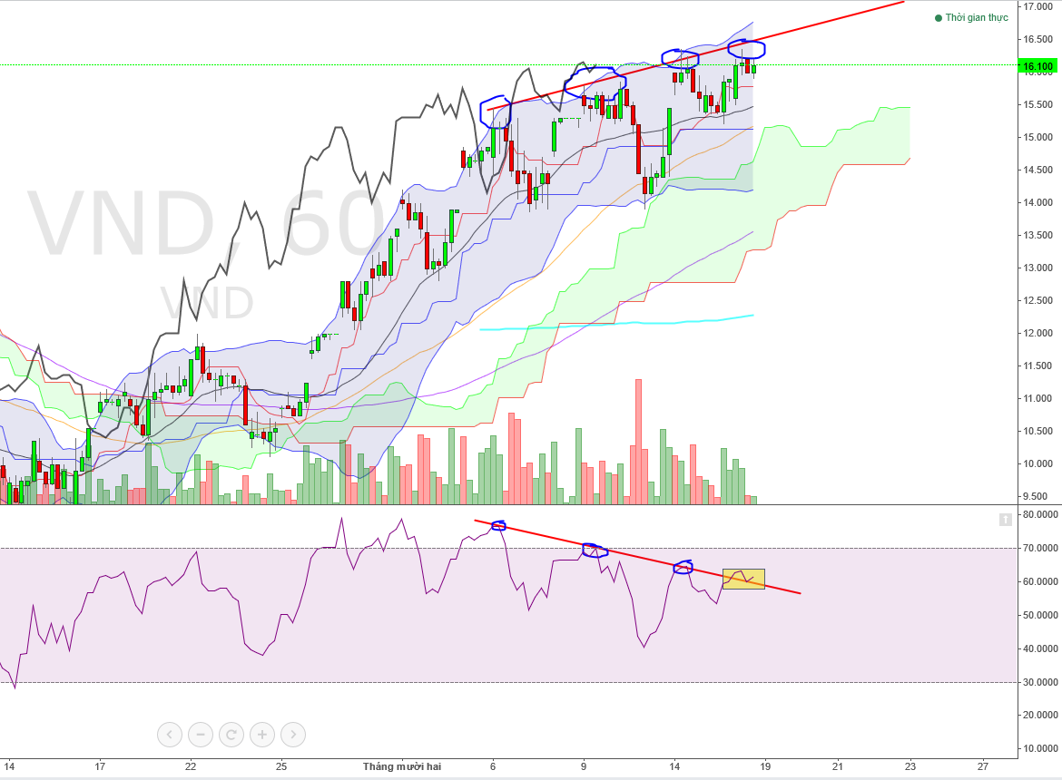 Lấy ví dụ về trường hợp này đang có VND, một cổ phiếu khá hot thời gian gần đây khi được sự yêu thích và được mua ròng liên tục của khối ngoại.