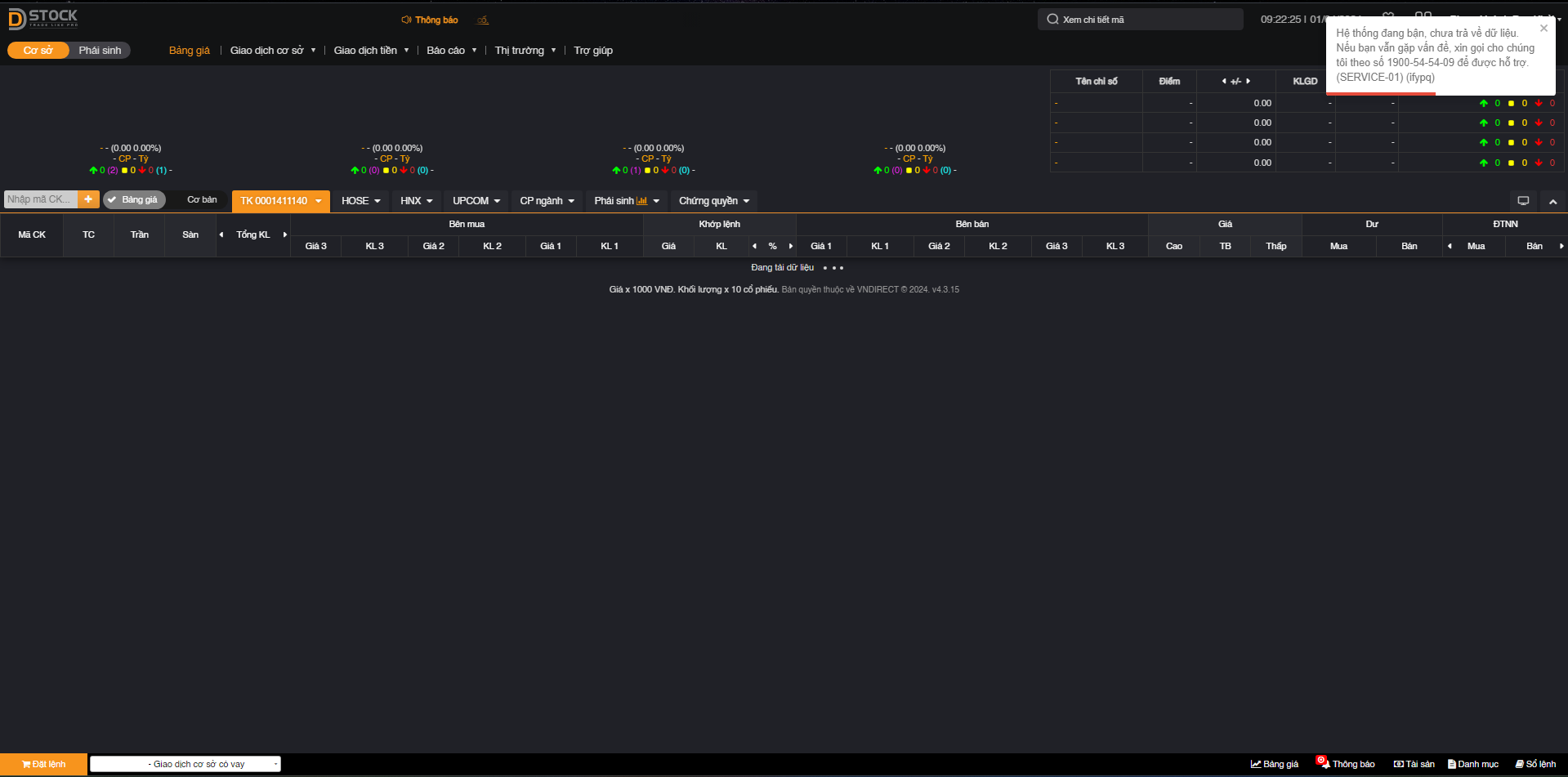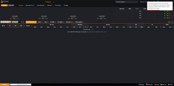 Trên website bảng giá của Công ty, xuất hiện dòng thông báo "Hệ thống báo lỗi đang bận, chưa trả về dữ liệu".