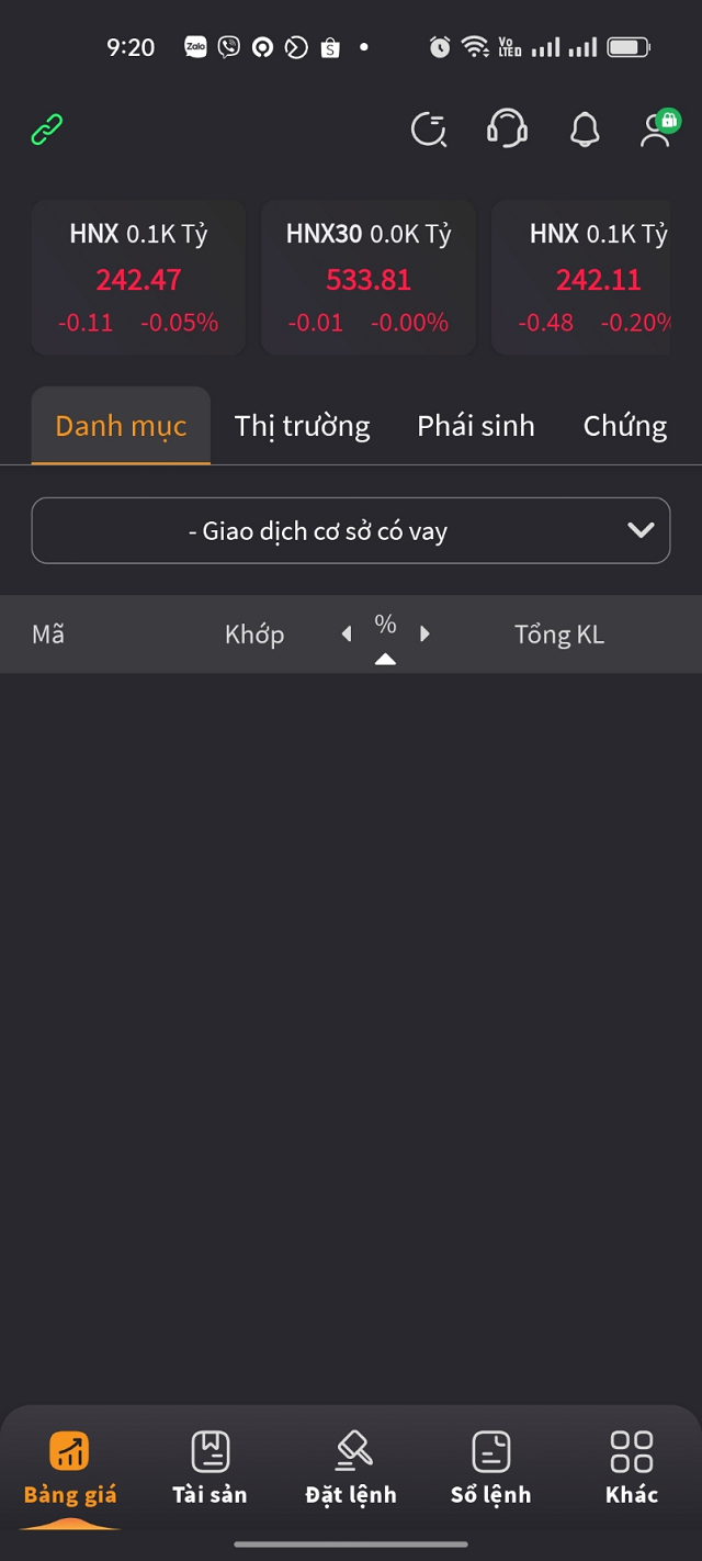 | Đến 9h20 sáng ngày 01/04, danh mục cổ phiếu vẫn chưa xuất hiện. Ảnh: Nhà đầu tư cung cấp |